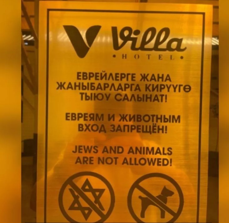 Ранее в гостинице Villa в Оше посетитель сфотографировал рядом со стойкой регистрации табличку с текстом, в котором представителям еврейского народа в оскорбительной форме запрещается вход в гостиницу.