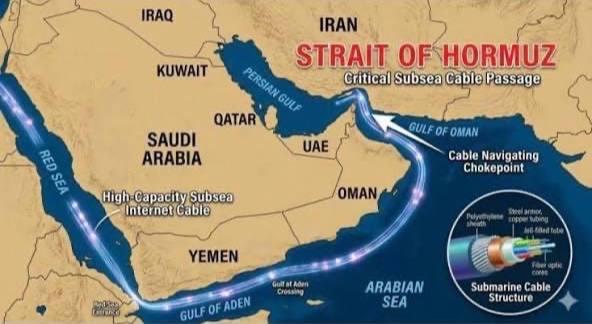 Иранские госСМИ опубликовали подробную карту подводных интернет-кабелей, проходящих через Ормузский пролив, назвав их крайне уязвимыми.