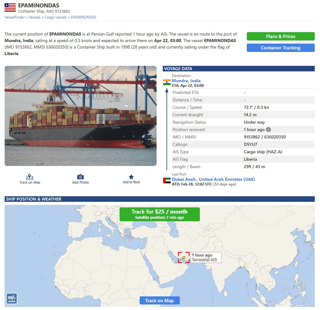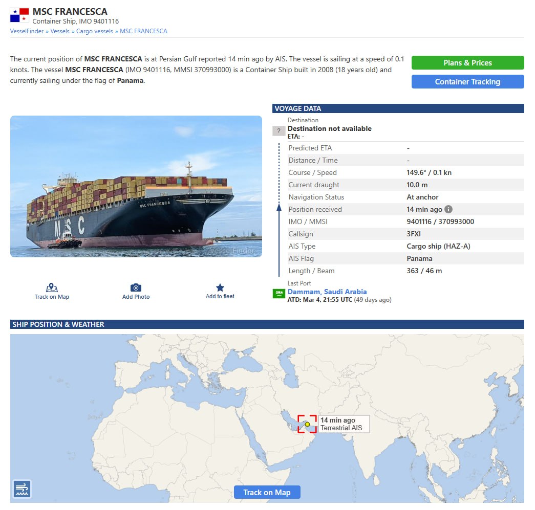 «Два судна-нарушителя, MSC FRANCESCA (ходит под флагом Панамы), связанное с сионистским режимом, и EPAMINODAS (ходит под флагом Либерии — прим. ТАСС), которые угрожали морской безопасности, не имели необходимых разрешений и вмешались в навигационные системы, были захвачены ВМС КСИР и переброшены к иранскому побережью», — приводит текст заявления агентство Mehr.