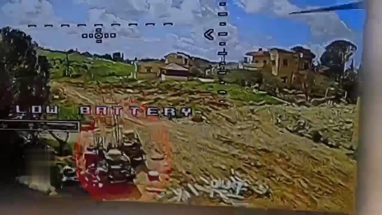 Удачная охота FPV-дрона «Хезболлы» за движущимся израильским бронеавтомобилем HMMWV в Ливане и поражение бронеэкскаватора Caterpillar 349E.