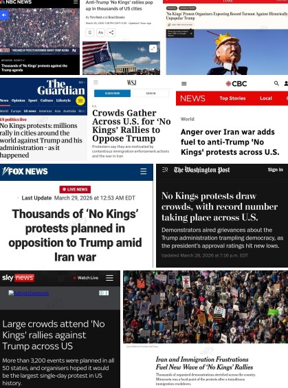 Fox News: тысячи протестов «Нет королю» против Трампа запланированы на фоне войны с Ираном.