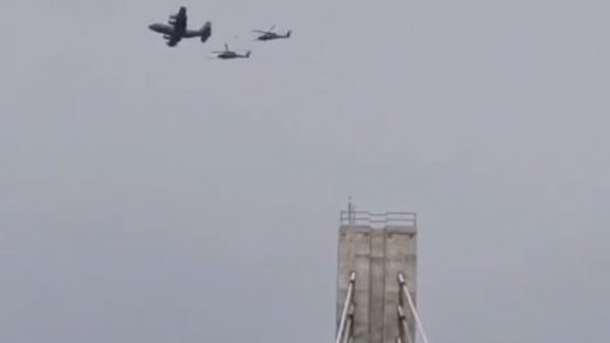 Видео с поисково-спасательными вертолетами HH-60G Pave Hawk и самолетом HC-130J Combat King II ВВС США, как заявляется, замеченными на малой высоте в Иране.