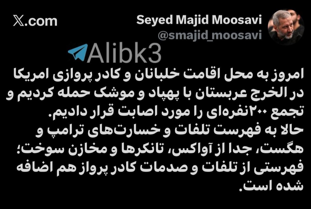 «Мусульманский народ Ирака мужественно поддержал Иран в этой несправедливой войне. Это сопротивление обусловлено не географическими ограничениями, а общей историей, идентичностью и религиозными ценностями. Я жму руку иракцам, официальным лицам и бойцам», — написал он в X.