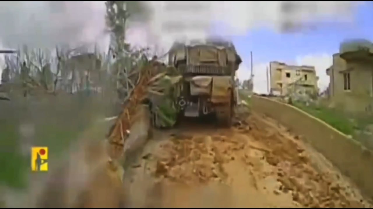Повреждение танка Меркава Израиля в результате атаки FPV-дрона Хезболлы.