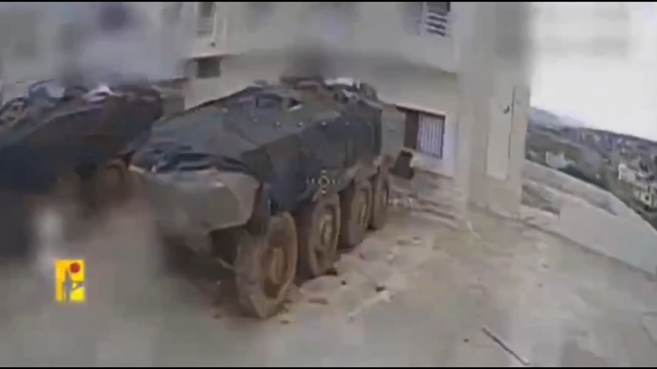 Так, один из FPV-дронов был запущен в наиболее уязвимую часть танка Merkava Mk.4M — открытый люк небольшого кормового десантного отделения (хотя в конце и клюнул ниже). Другой камикадзе прилетел в борт одного из припаркованных в ряд новейших израильских БТР Eitan («Эйтан»).