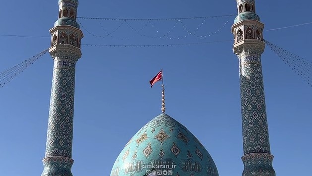 Несколько минут назад красный флаг «Я-ля-Сарат аль-Хусейн» (О мстители за кровь Хусейна) в знак мести за кровь Верховного лидера Исламской революции и Верховного главнокомандующего был поднят над куполом мечети Джамкаран в Кум.