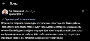 Президент Ирана Масуд Пезешкиан заявил, что Иран рассматривает месть за атаки Израиля и США как своё «законное право и обязанность»