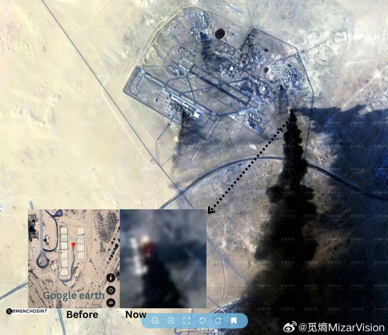Спутниковый снимок уничтоженной РЛС Matla ul-Fajr на авиабазе Захедан в провинции Систан и Белуджистан на юге Ирана.