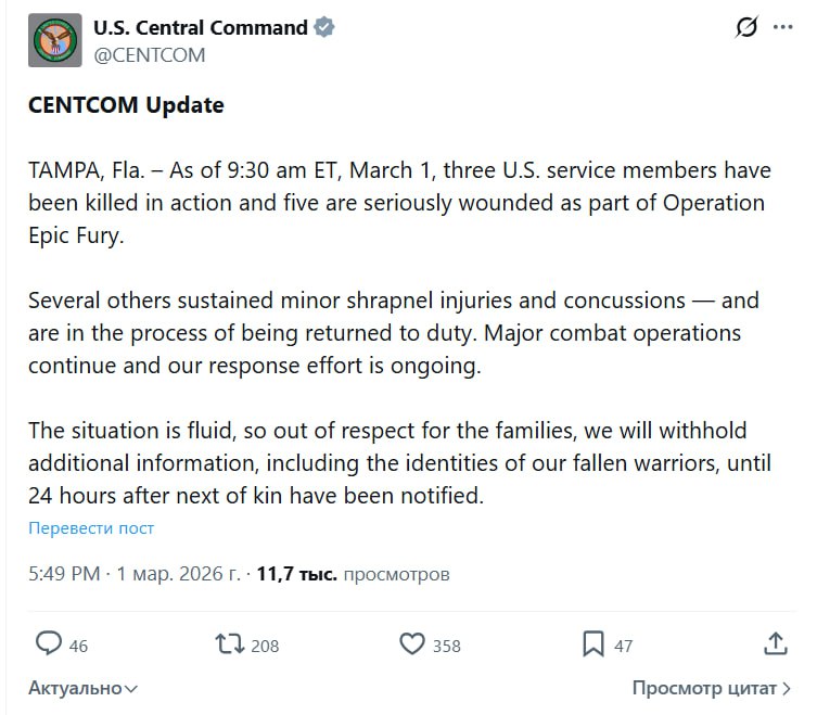 Чрезвычайное положение было введено в стране 28 февраля в первые часы операции против Ирана. Как отмечает телеканал, оно может быть отменено раньше, если военная кампания завершится до 12 марта, но может быть и продлено, если боевые действия не завершатся к тому времени.