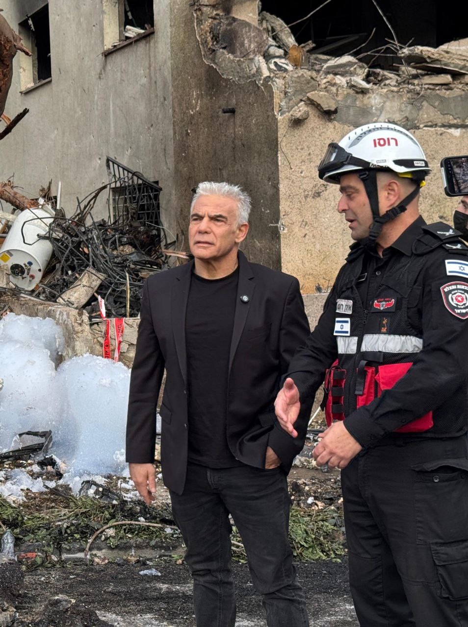 Яир Лапид, лидер оппозиции кнессета режима Израиля, посетил разрушенные районы Тель-Авива после вчерашних ракетных и дроновых атак Ирана.