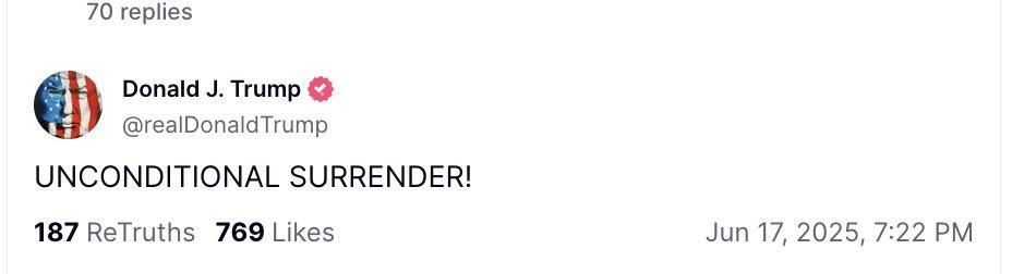 «Мы теперь полностью контролируем воздушное пространство над Ираном», — написал он на своей странице в социальной сети Truth Social. Глава вашингтонской администрации не привел подробностей. США ранее неоднократно заявляли, что не принимают участия в военной операции Израиля против Ирана.