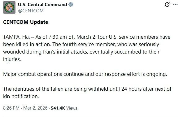 «Не буду раскрывать детали наших тактических усилий. Однако самые серьезные удары американскими вооруженными силами еще не нанесены. Следующий этап [операции] станет для Ирана даже более суровым, чем нынешний», — сказал он, отвечая на вопросы журналистов в стенах Конгресса США.