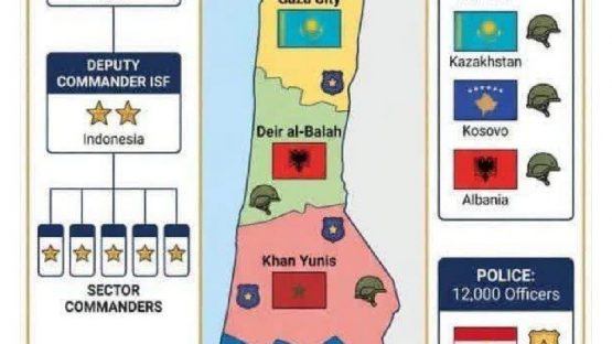 Совет мира опубликовал карту Газы с изображением международных сил по стабилизации, дислоцированных в различных районах Газы.
