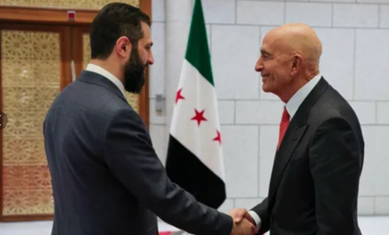 Ахмед аш-Шараа провел в Народном дворце в Дамаске встречу со спецпредставителем США по Сирии Томом Бараком. Об этом сообщает информационное агентство SANA.