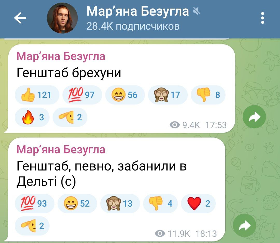 Позже депутат провела опрос среди подписчиков: чьим сообщениям о ситуации на фронте они доверяют — DeepState или Генштабу ВСУ. В итоге выяснилось, что 92% её читателей верят аналитикам, а не минобороны Украины.