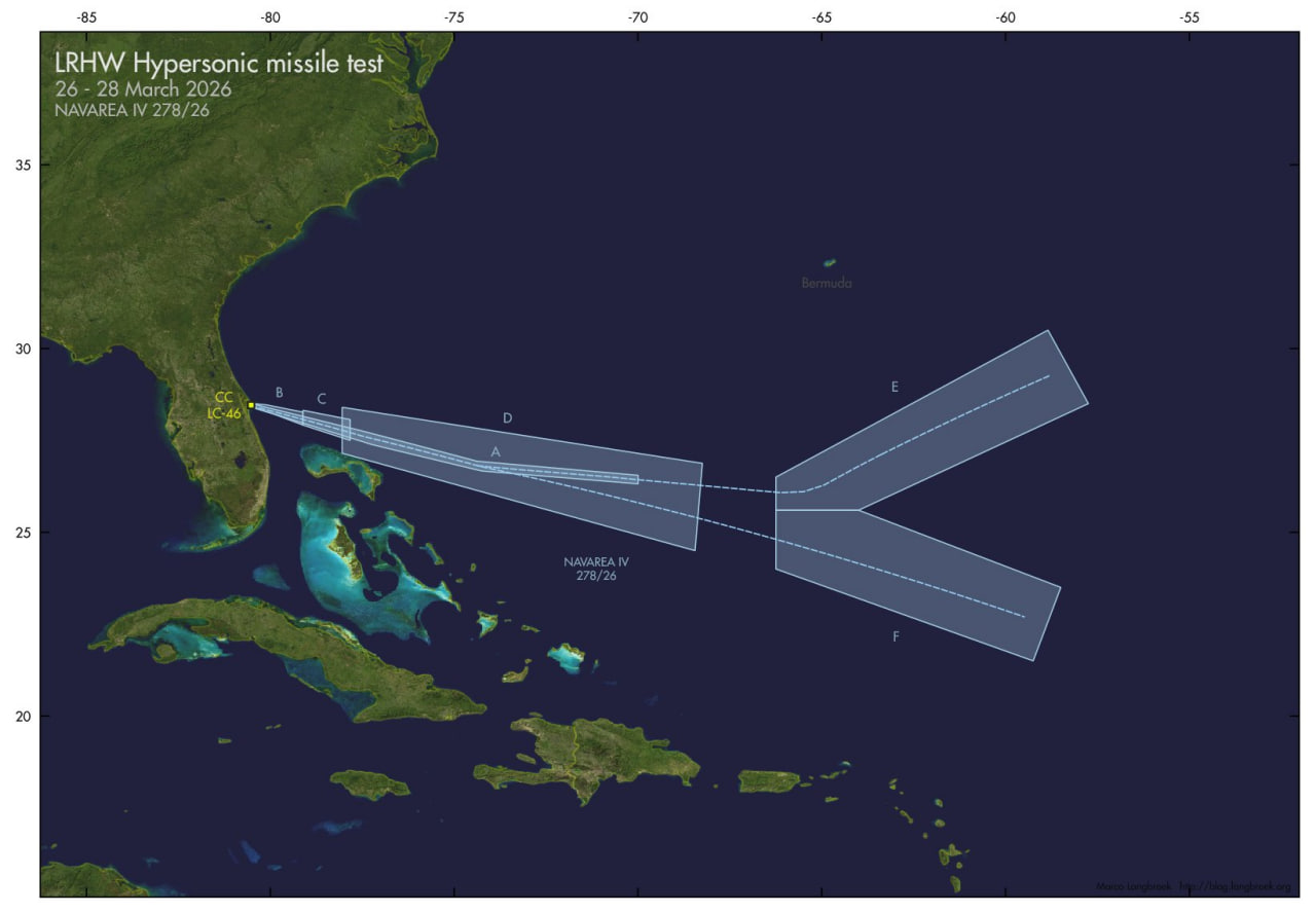 Навигационное предупреждение о закрытии нескольких зон в Атлантическом океане было распространено американскими ведомствами в начале прошлой недели. Проведение пуска было запланировано в период с 26 по 28 марта 2026 года. Фактический пуск был выполнен в пятницу, 26 марта, с площадки космодрома на мысе Канаверал во Флориде (стартовый комплекс 46).