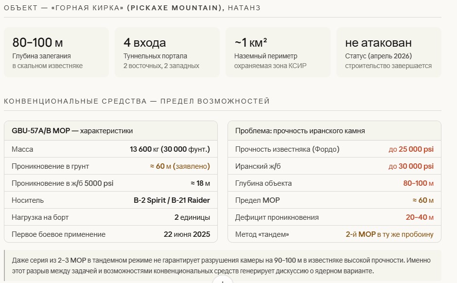 Для Epic Fury это критически важный узел: дедлайн, объект не поражён, конвенциональные средства на пределе возможностей.