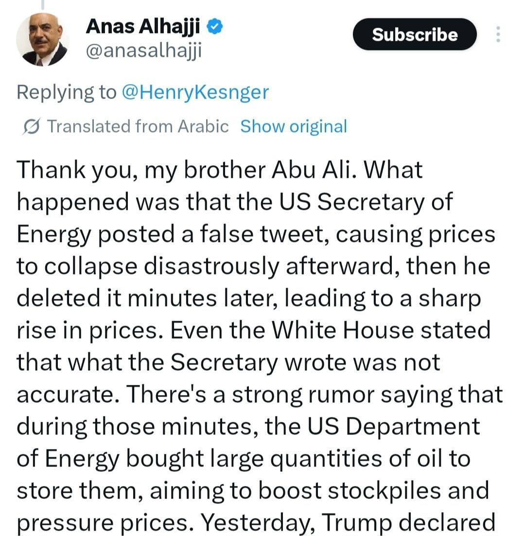 Любопытно, что подобная ситуация имела место 10 марта. Тогда министр энергетики США Крис Райт разместил в соцсети X ложный твит, будто ВМС США сопроводили нефтяной танкер через Ормузский пролив. Из-за этого цены на нефть обвалились на 17%. Однако вскоре американец свой пост удалил, и цены опять начали расти.