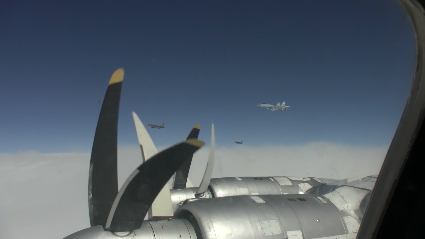 Стратегические ракетоносцы Ту-95МС дальней авиации в сопровождении истребителей Су-35С и Су-30СМ выполнили полёт над нейтральными водами Берингова моря.