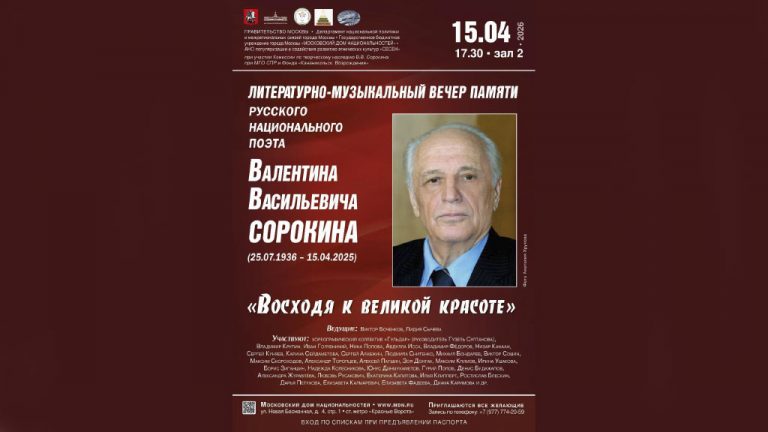15 апреля в Доме национальностей на Новой Басманной улице пройдёт вечер «Восходя к великой красоте».