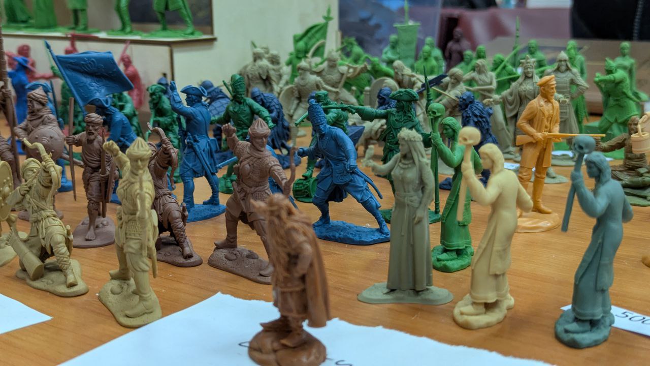 «Есть игровой солдатик, есть миниатюрка для военно-исторических игр… Есть коллекционная миниатюра… это просто произведение искусства поставить на полочку. Есть плоские солдатики, есть бумажные, есть пластилиновые… Очень много градаций», — рассказывает организатор.