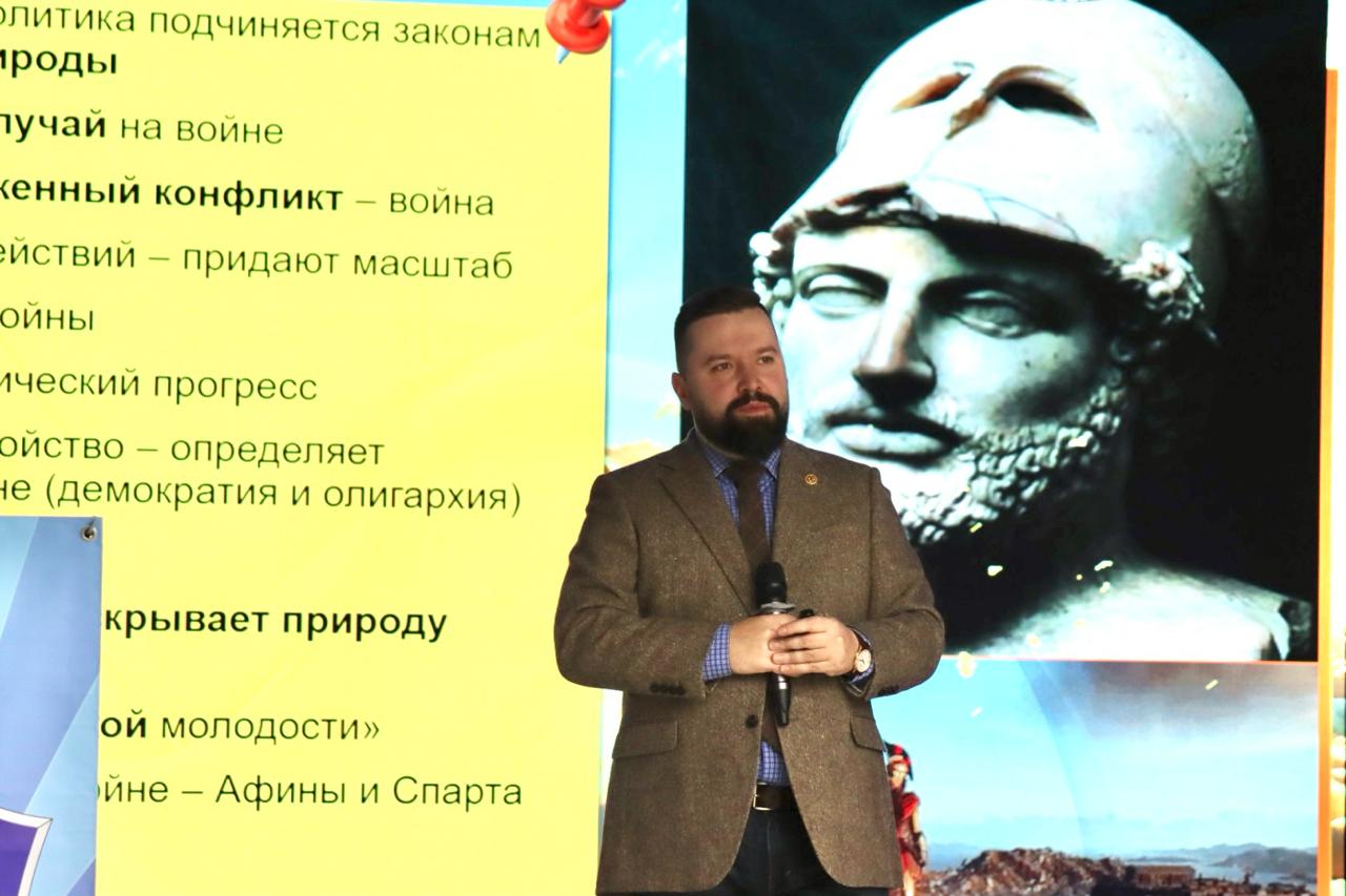Особое внимание было уделено информационной безопасности и гибридным угрозам. Спикеры — политолог Дмитрий Егорченков и эксперт АНО «Диалог Регионы» Василий Плотников — детально разобрали с молодежью механизмы манипуляций в социальных сетях, распространения фейков и методы противодействия. Выступление было настолько актуальным и вызвало такой отклик, что казаки Всевеликого войска Донского пригласили Василия Плотникова вступить в их ряды для совместной борьбы с враждебной пропагандой, на что эксперт с готовностью согласился.
