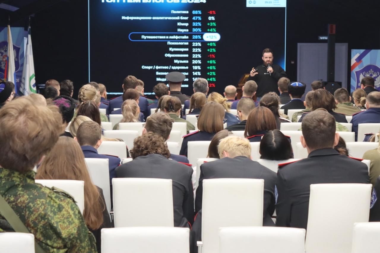Особое внимание было уделено информационной безопасности и гибридным угрозам. Спикеры — политолог Дмитрий Егорченков и эксперт АНО «Диалог Регионы» Василий Плотников — детально разобрали с молодежью механизмы манипуляций в социальных сетях, распространения фейков и методы противодействия. Выступление было настолько актуальным и вызвало такой отклик, что казаки Всевеликого войска Донского пригласили Василия Плотникова вступить в их ряды для совместной борьбы с враждебной пропагандой, на что эксперт с готовностью согласился.