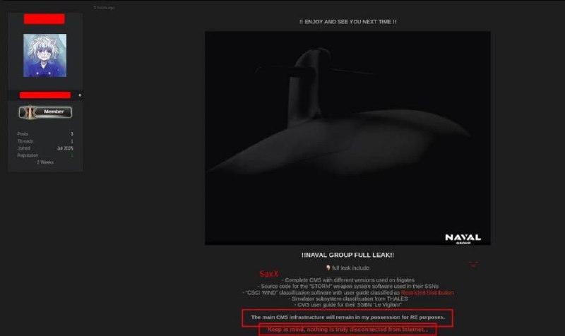 Иностранные журналисты уточняют, что хакеры добрались до французской оборонной компании Naval Group, которая производит подлодки и корабли. Отмечается, что был получен доступ к секретным данным, в том числе: