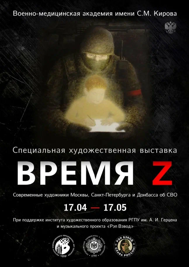 17 апреля в клубе Военно-медицинской академии имени С.М. Кирова открылась выставка «Время Z», посвящённая Специальной военной операции. Проект существует с 2023 года, объединяя уже более двух десятков художников — от признанных мастеров до молодых авторов. Экспозиция успела побывать на разных площадках, включая «Лахта Центр» Газпрома, но именно здесь, в alma mater военных врачей России, она обрела особый, почти сакральный смысл.