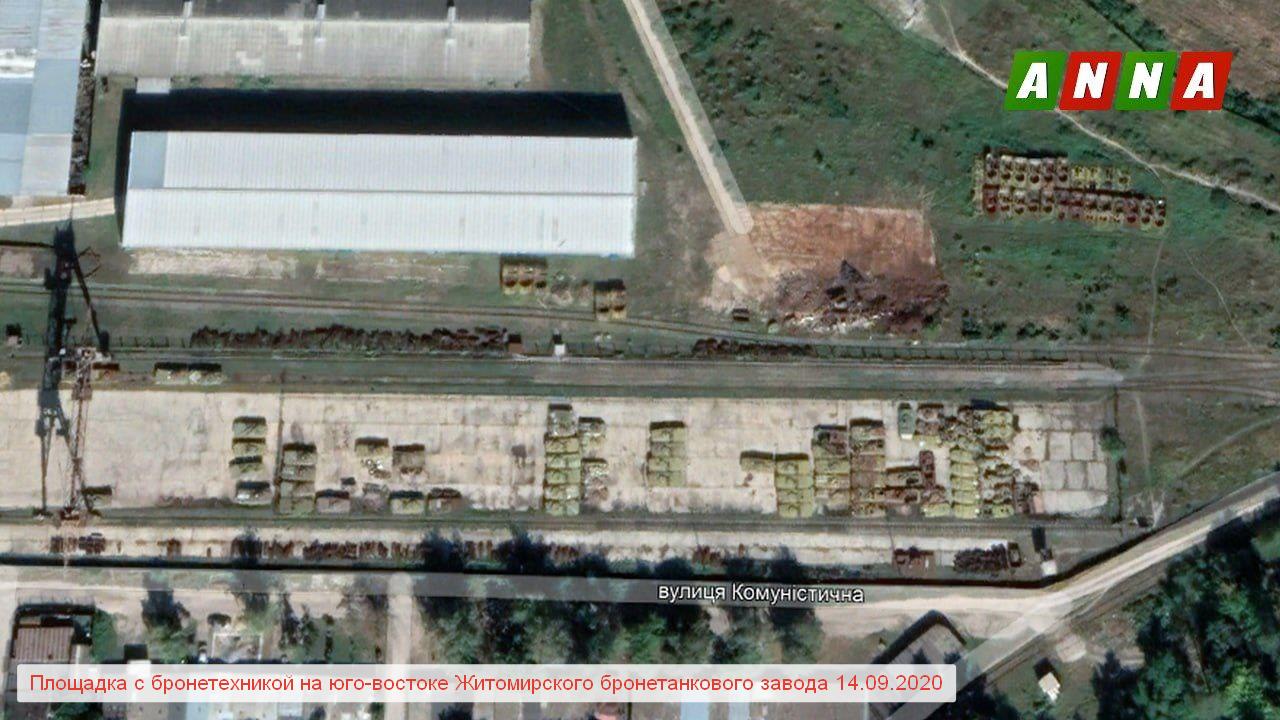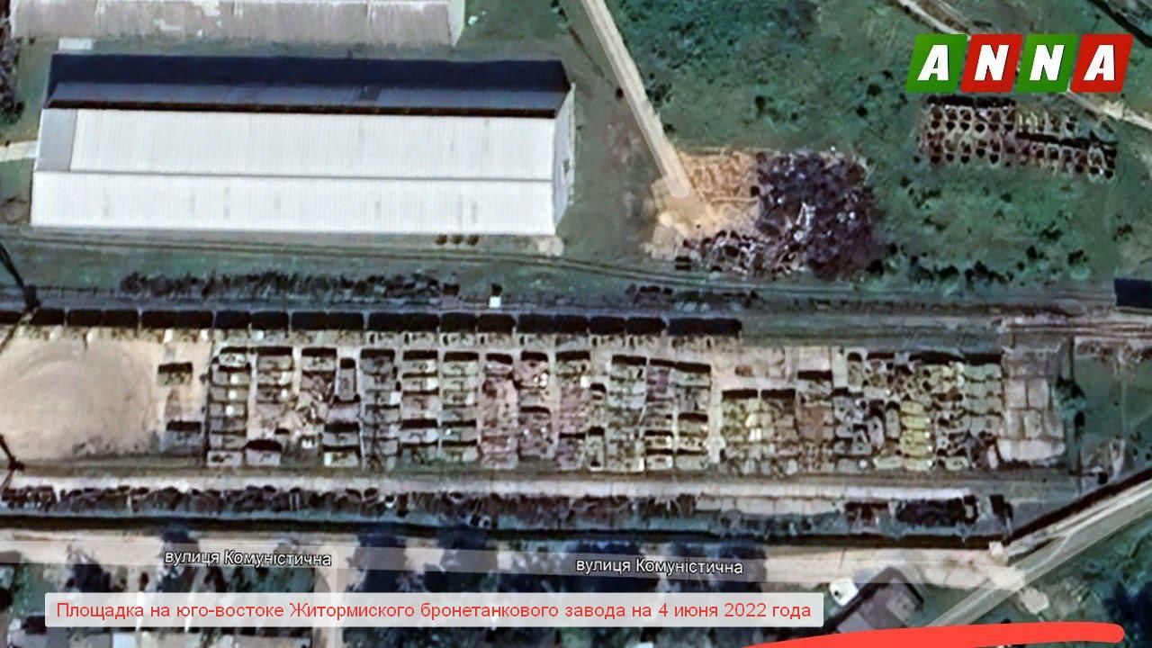 Пустовавшая в июне 2020 года площадка Житомирского бронетанкового завода в сентябре 2022 года была заполнена корпусами бронетехники.
