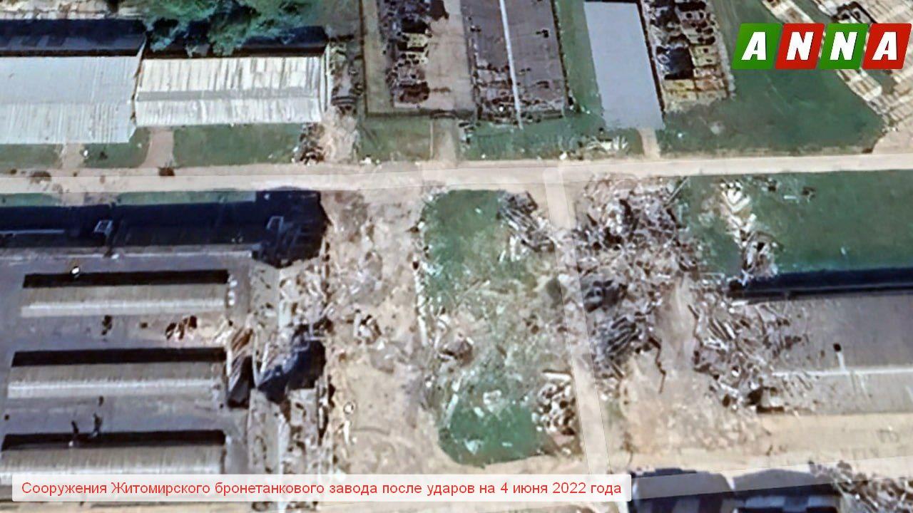 Видимые последствия ударов, нанесённых по Житомирскому бронетанковому заводу (с) Google Earth