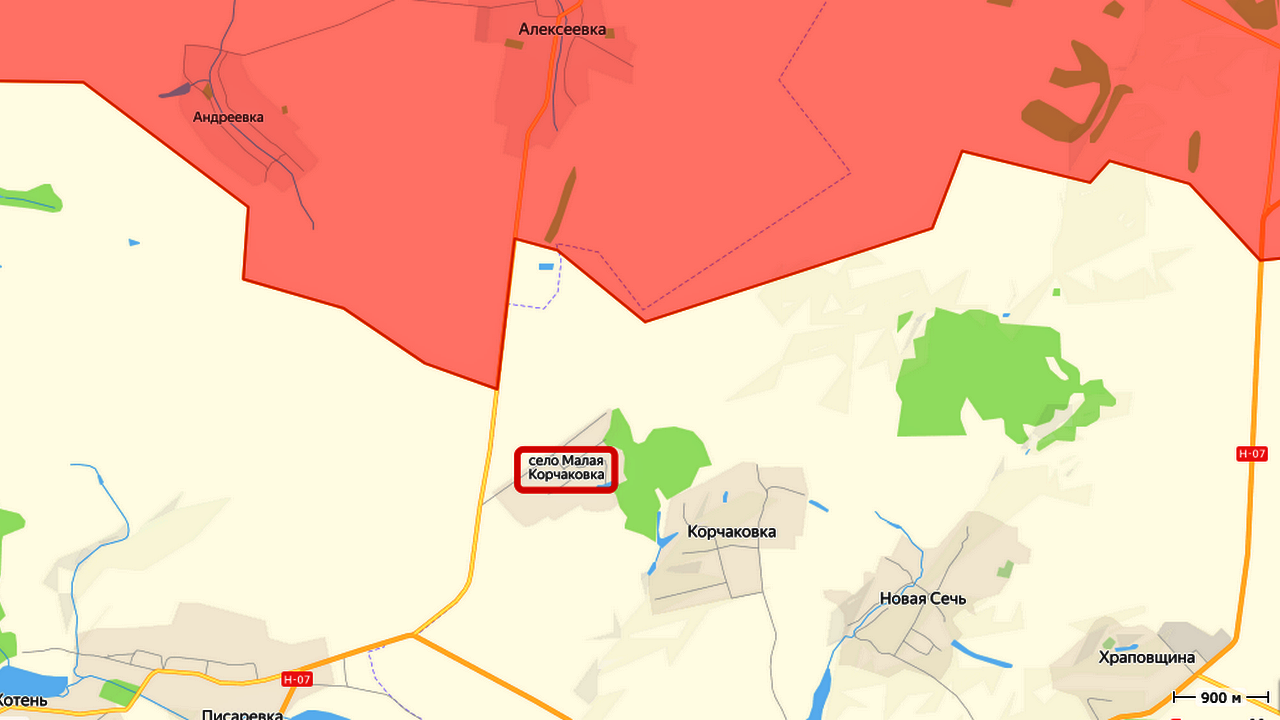 Малая Корчаковка, как отмечается в публикации, является первым укрепленным противником населённым пунктом в цепи, вероятно, Малая Корчаковка — Корчаковка — Новая Сечь — Храповщина и Марьино. Отметим также, что освобождённый населённый пункт находится на расстоянии чуть больше 15 километров от города Сумы.