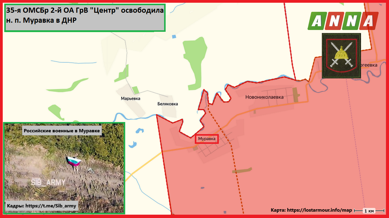 Вооруженные силы России, продолжая наступление на Донбассе, освободили населенный пункт Муравка. Заняли село бойцы группировки войск «Центр».