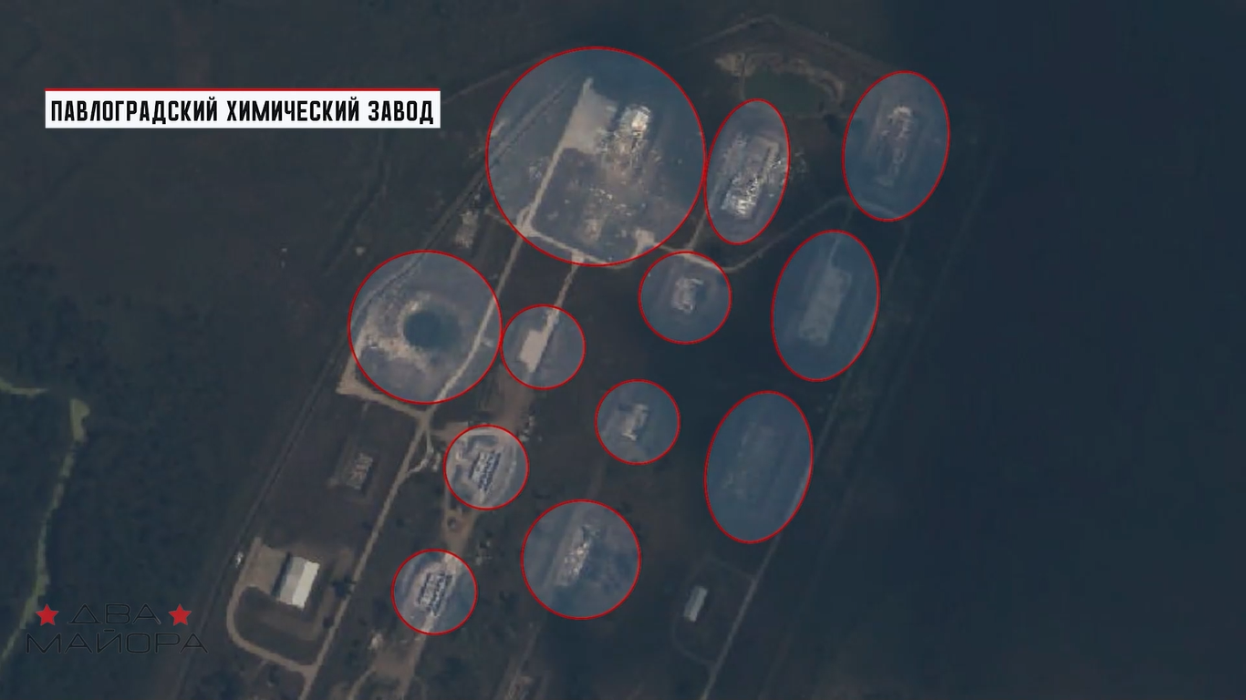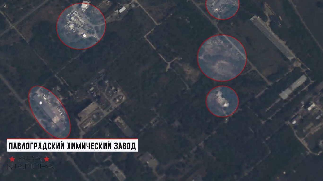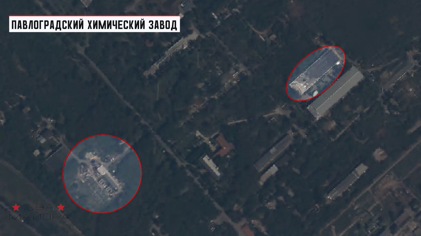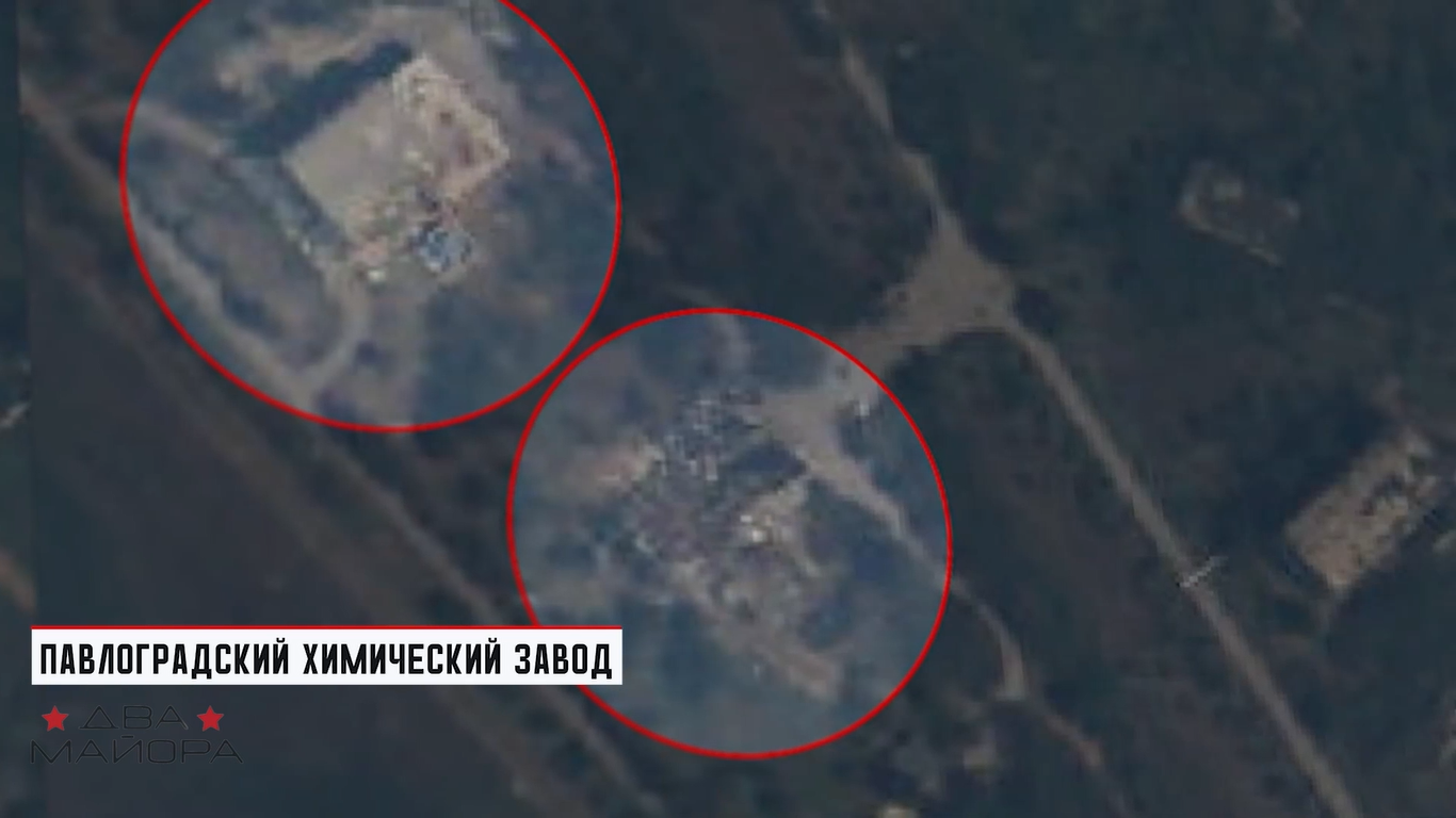 Объекты Павлоградского химического завода до и после ударов (с) ФСБ России