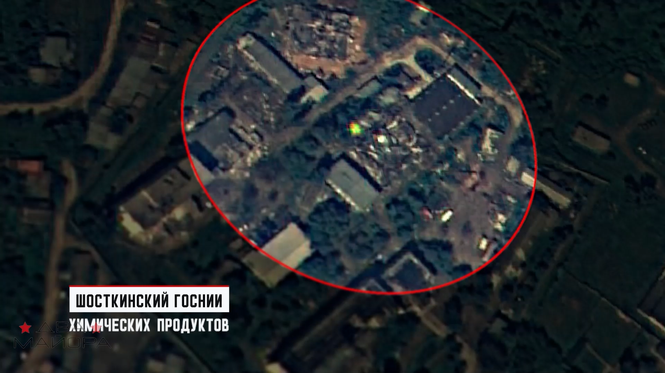 Объекты Шосткинского ГосНИИ химических продуктов до и после ударов (с) ФСБ России
