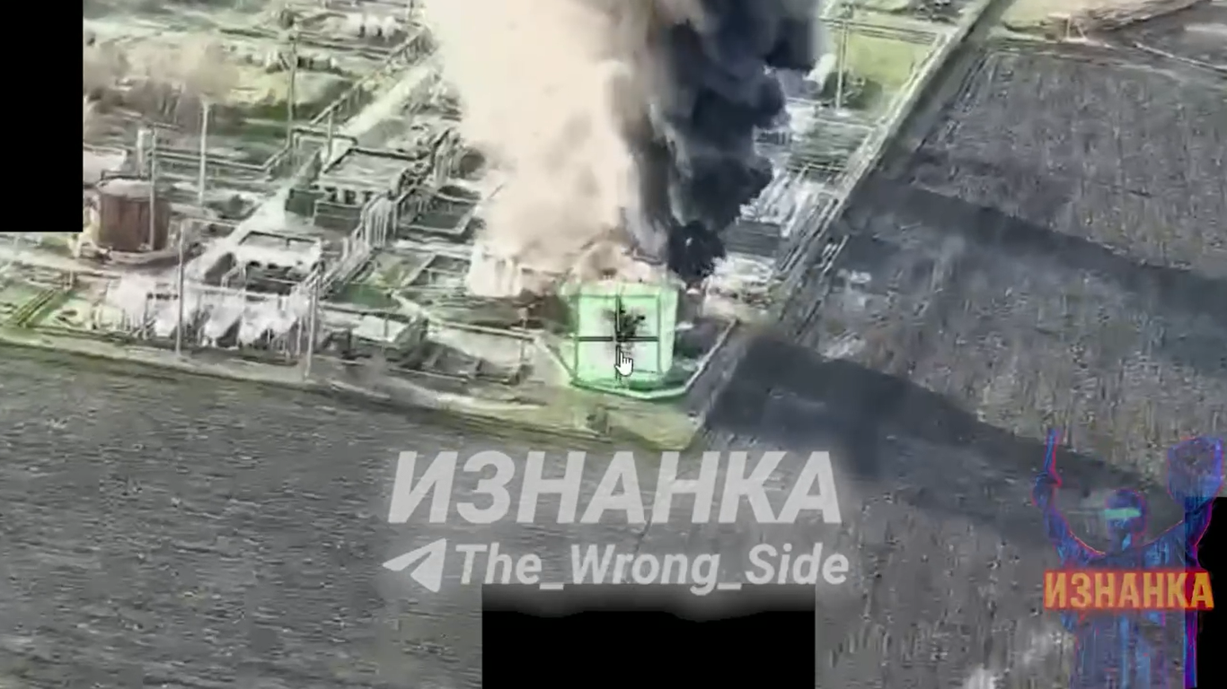 Вчера, в воскресенье, 5 апреля, канал «Изнанка» показал ещё один эпизод боевого применения ударных беспилотников «Герань-2» с телеуправлением. Российские дроны нанесли удары по резервуарам для хранения нефтепродуктов компании «Укрнафта».