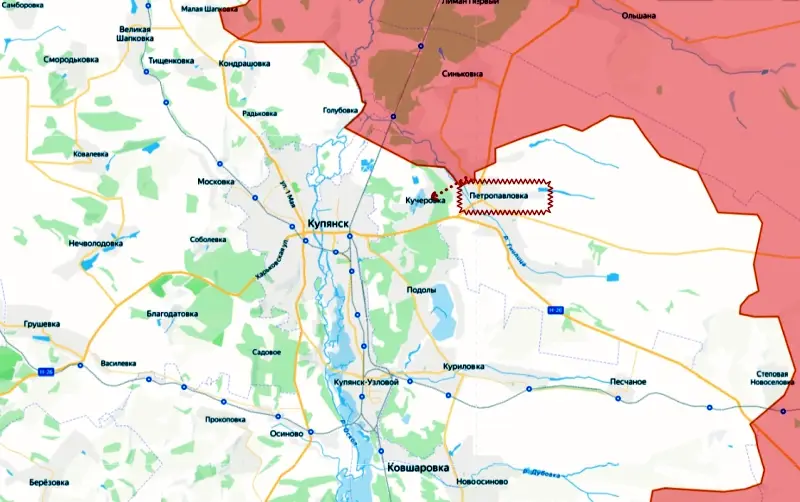 Источники с мест сообщают, что бойцы группировки войск «Запад» возобновили наступление на левом берегу реки Оскол. Водораздел проходит через Купянск и делит его на две неравные части. Наши бойцы уже закрепили позиции на восточной окраине села Петропавловка. В реальности это пригород Купянска с данной стороны. После него остаётся лишь Кучеровка, которая значительно меньше — по числу жителей до конфликта практически в четыре раза.