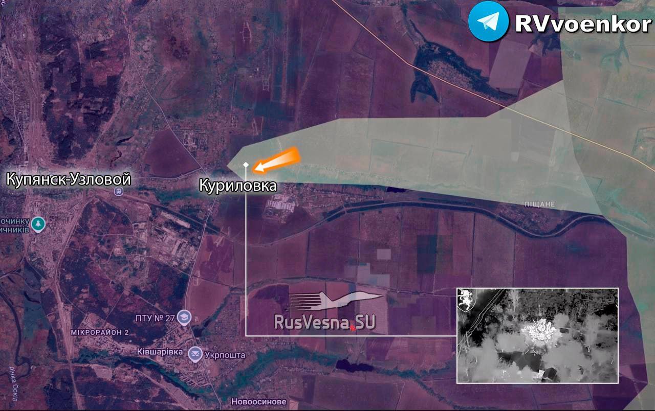 Обстановка в этом районе остаётся запутанной: украинские военные аналитики отмечают, что в одних и тех же зонах могут находиться как российские, так и украинские войска. Между тем, на восточном берегу Оскола российские силы проводят штурмовые операции у Куриловки.