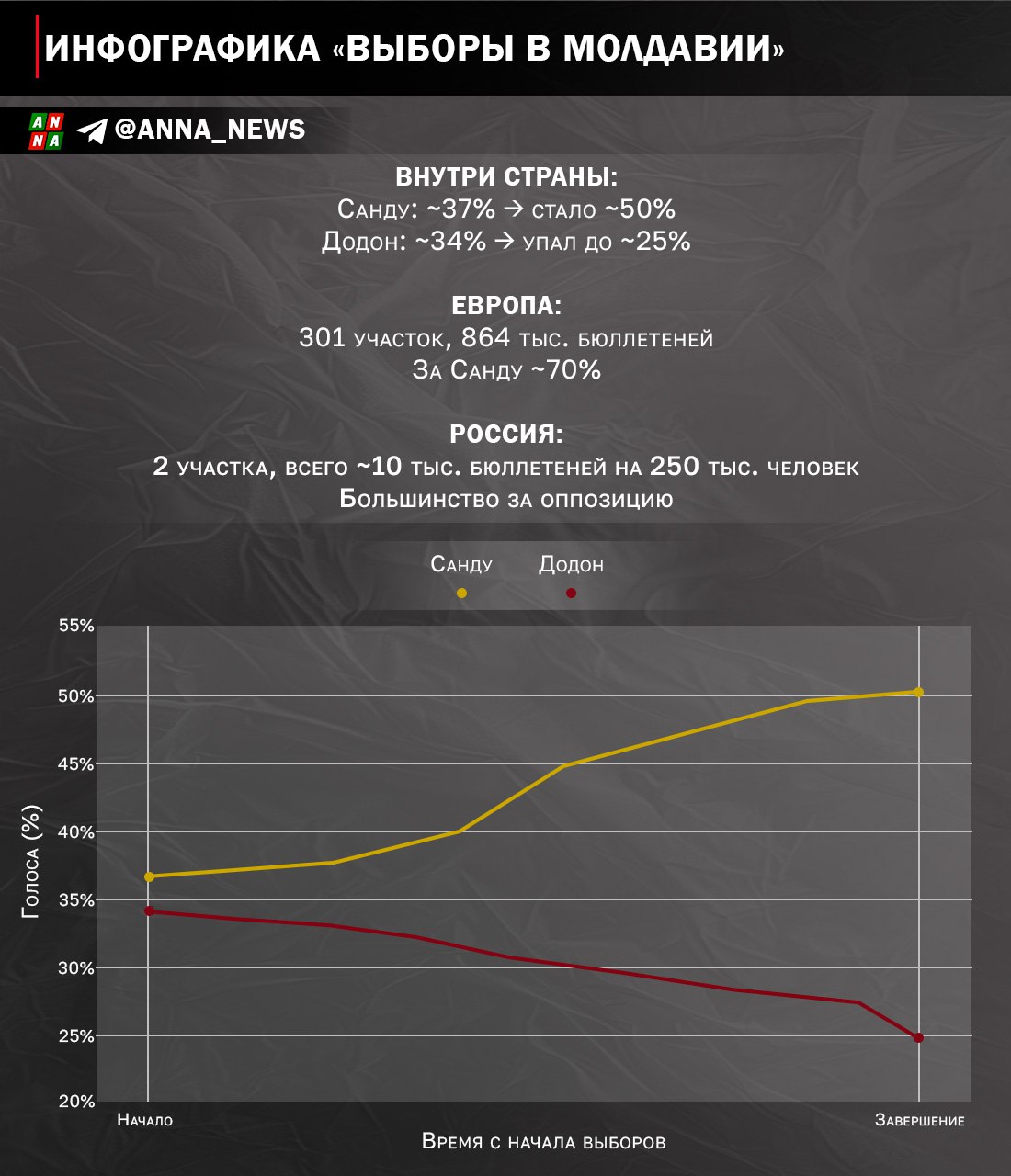 Динамика подсчёта голосов тоже вызвала подозрения. На первых этапах партия Санду и оппозиционный блок Додона шли почти на равных. Однако по мере обработки протоколов разрыв стал стремительно увеличиваться в пользу партии власти. Такая «арифметика» выглядит слишком удобной и напоминает классическую схему, когда результат подгоняется под заранее заданный сценарий.