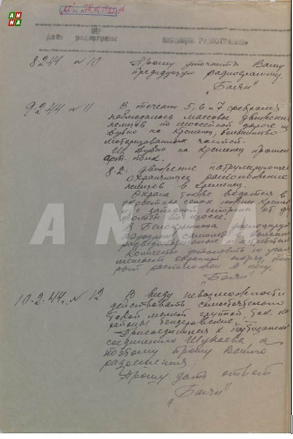 9 февраля 1944 г. радист сообщает, что в период 5–7 февраля фиксируется массовое движение немцев по шоссейной дороге из Дубно в Кременное, преимущественно моторизованные части. Из Дубно на Кременец прошел артиллерийский полк. На 8 февраля проводилось патрулирование и охрана немецких позиций в Кременце и окрестных селах. В Белокренице расположен аэродром с разведывательными самолетами и истребителями, их количество установить не удалось из-за охранного отряда в лесу.